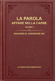 “Riguardo al conoscere Dio”, il secondo volume de “La Parola appare nella carne”, contiene i discorsi rivolti all’intera umanità dal Cristo degli ultimi giorni, Dio Onnipotente, successivi a quelli riportati ne “La manifestazione e l’opera di Dio”. Dio tratta diverse verità, come l’opera che ha compiuto sin dalla creazione del mondo, la Sua volontà e le Sue aspettative nei confronti dell’umanità racchiuse nella Sua opera, lo sgorgare dalla Sua opera di tutto ciò che Dio ha ed è, nonché la Sua giustizia, la Sua autorità, la Sua santità e il fatto che Egli è la fonte della vita per tutte le cose. Dopo aver letto questo libro, coloro che credono veramente in Dio potranno trovare conferma del fatto che Colui che è in grado di compiere quest’opera e di promulgare queste disposizioni è Colui che è sovrano su tutte le cose, e potranno anche conoscere veramente l’identità di Dio, il Suo prestigio e la Sua essenza, trovando così conferma del fatto che il Cristo degli ultimi giorni, Dio Onnipotente, è Dio Stesso, l’unico.