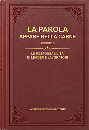 “Le responsabilità di leader e lavoratori” è il quinto volume de “La Parola appare nella carne”. Questo libro contiene i sermoni e le condivisioni tenuti alle chiese su questo argomento da Dio Onnipotente, il Cristo degli ultimi giorni. Dio ha condiviso chiaramente sulle responsabilità dei leader e dei lavoratori, nonché sugli specifici principi e cammini di pratica per i vari lavori della chiesa. Egli ha inoltre esposto l’essenza delle varie manifestazioni e azioni dei falsi leader. Questo è estremamente utile alle persone per imparare a discernere i falsi leader, a svolgere un lavoro reale e a raggiungere la sottomissione a Dio ed essere adatte all’uso da parte Sua. È di grande beneficio per loro al fine di comprendere la verità, conoscere sé stesse e svolgere i loro doveri in base ai principi.